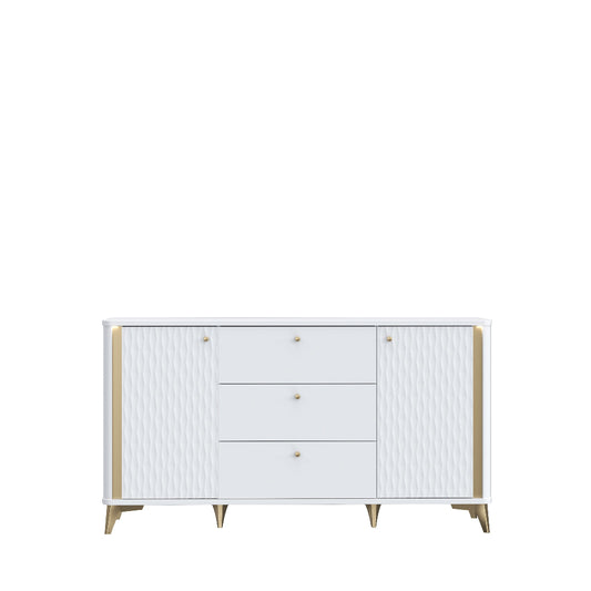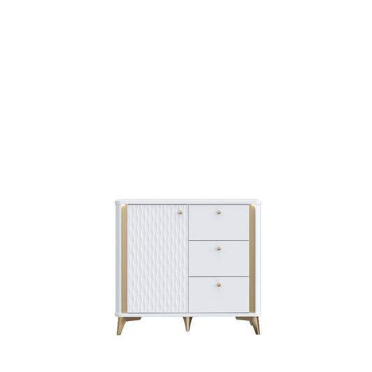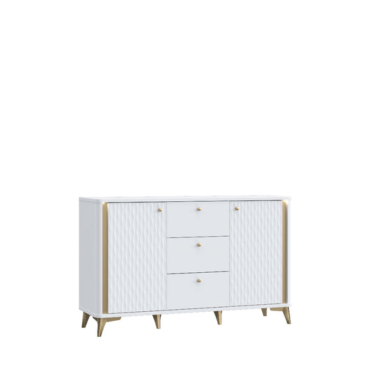 Forrest Hills – tai šiuolaikiška ir subtili baldų kolekcija, išsiskirianti baltos spalvos deriniu su auksinėmis detalėmis ir dekoratyviniais 3D fasadais. Kolekciją sudaro komodos ir televizoriaus staliukas, kurie sukurti taip, kad interjerui suteiktų lengvumo, jaukumo ir modernios prabangos. Šie baldai pasižymi funkcionalumu, talpiomis vietomis daiktams ir dailiomis formomis, todėl puikiai tinka tiek svetainei, tiek koridoriui ar valgomojo erdvei.
