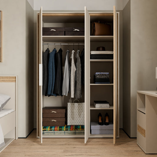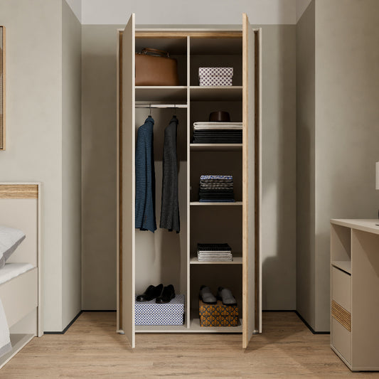 Wexlin kolekcija – tai šiuolaikinio dizaino ir natūralaus jaukumo dermė, sukurta tiems, kurie vertina ramų, subalansuotą interjerą. Švelni smėlio spalva harmoningai dera su šiltomis Mauvella ąžuolo detalėmis, suteikdama erdvei lengvumo ir elegancijos. Kolekcijoje rasite visus reikalingus baldus jaukiam ir funkcionaliam jaunuolio kambariui: lovą, komodą, spintas (taip pat kampinę), naktinę spintelę, vitrinos tipo spintelę bei rašomąjį stalą