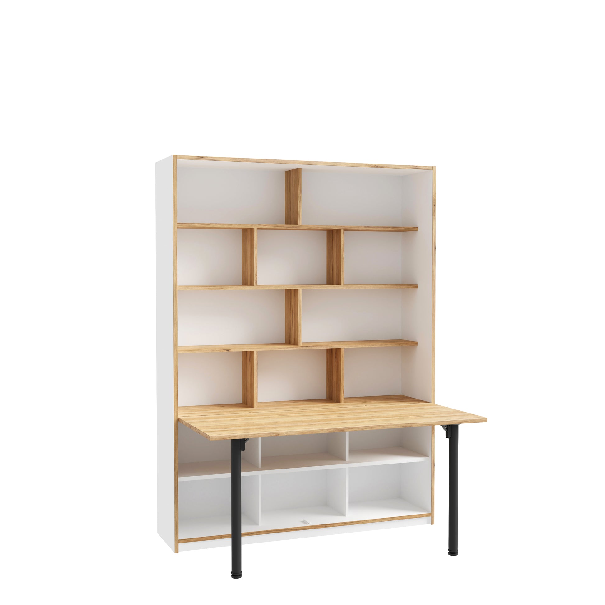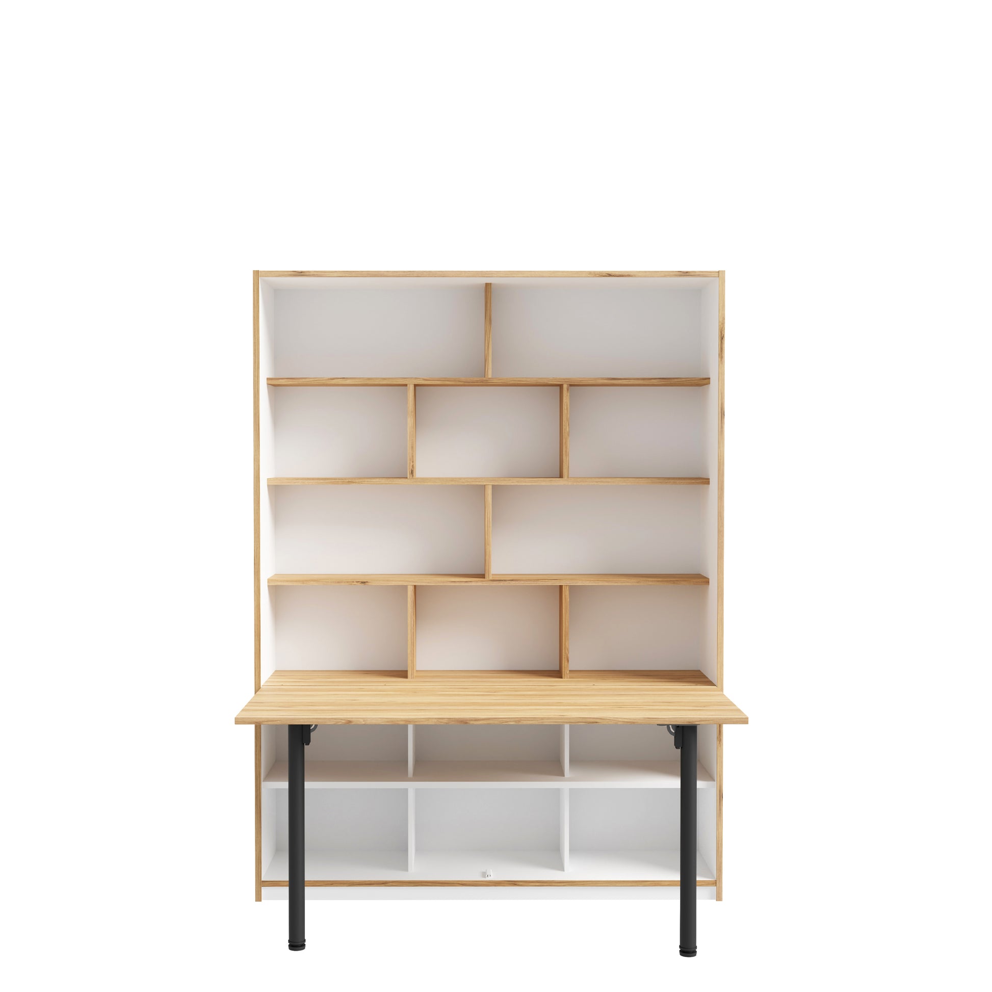 Multifunkcinė lentyna-stalas, kuri tinka mažoms erdvėms.