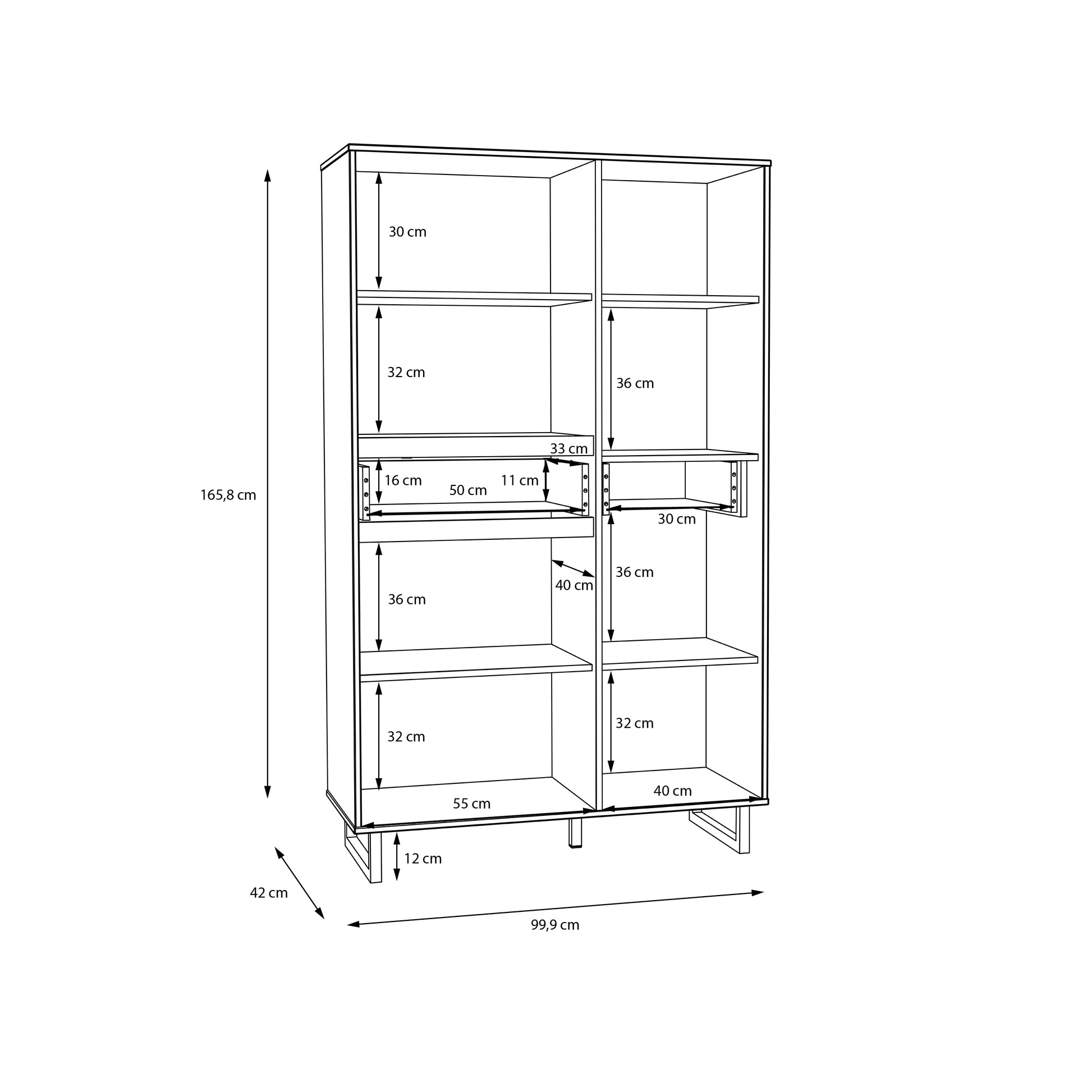 Aprašymas: Ši ąžuolo spalvos indauja yra puikus sprendimas jūsų interjerui. Jos išmatavimai - 99.9 cm ilgio, 165.8 cm aukščio ir 42.0 cm pločio - suteikia pakankamai vietos jūsų daiktams laikyti. Galima papildomai užsakyti apšvietimą, kuris suteikia jaukumo.