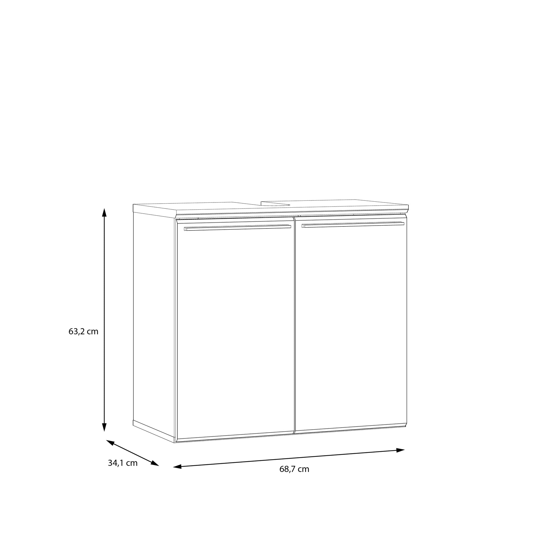 - Išmatavimai: → 68.7 ↑ 63.2 ↗ 34.1 cm