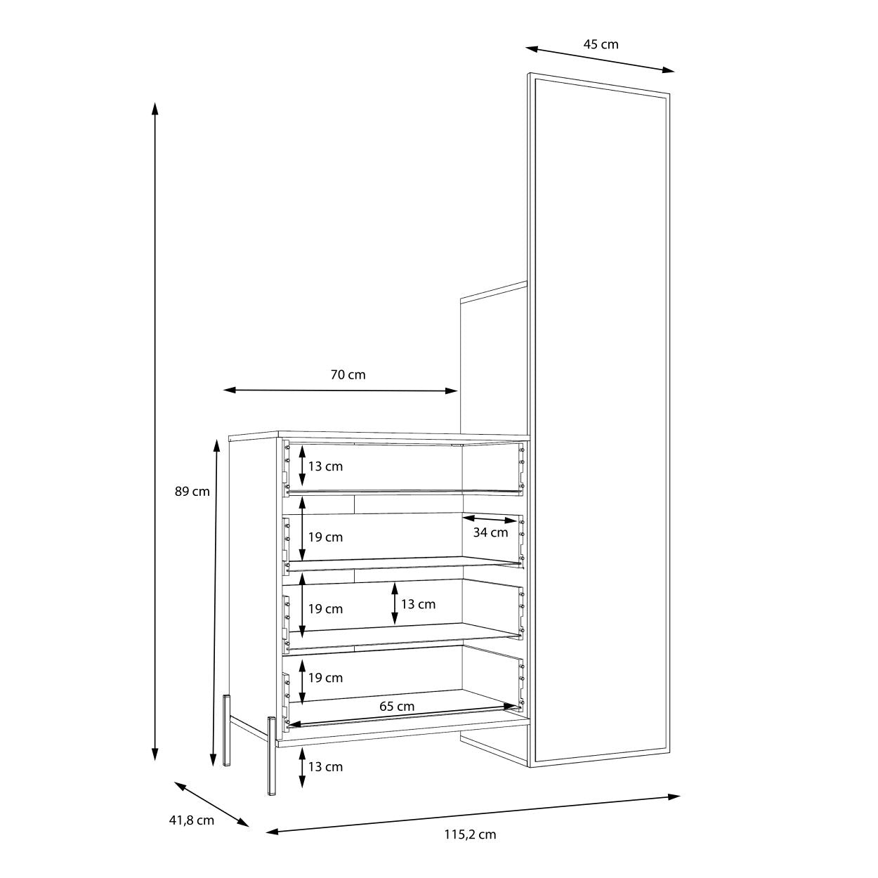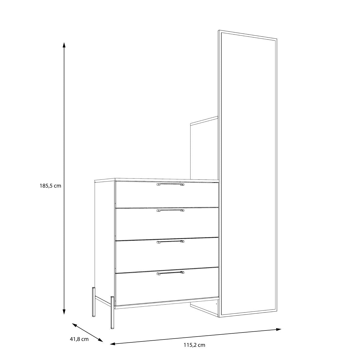 - Išmatavimai:→ 115.2 ↑ 185.5 ↗ 41.5 cm
