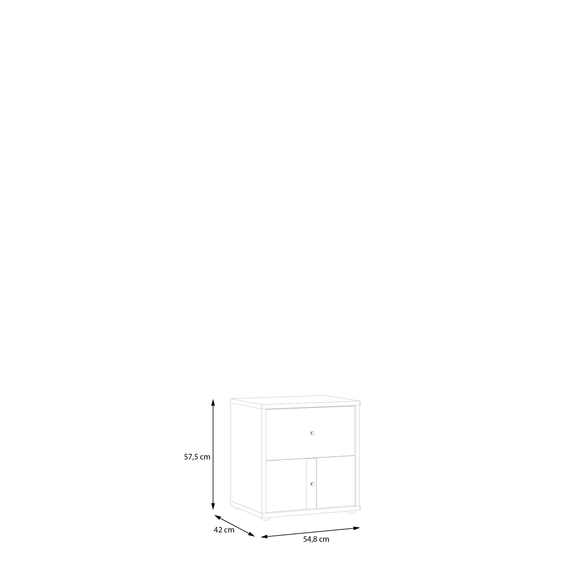 Išmatavimai: ↗ 42 cm; → 54,8 cm; ↑ 57,5 cm.
