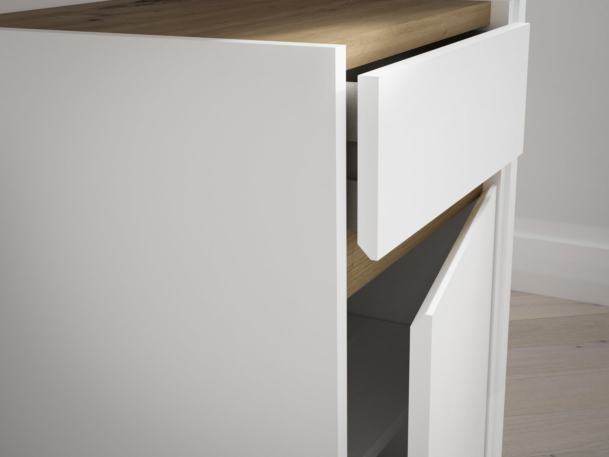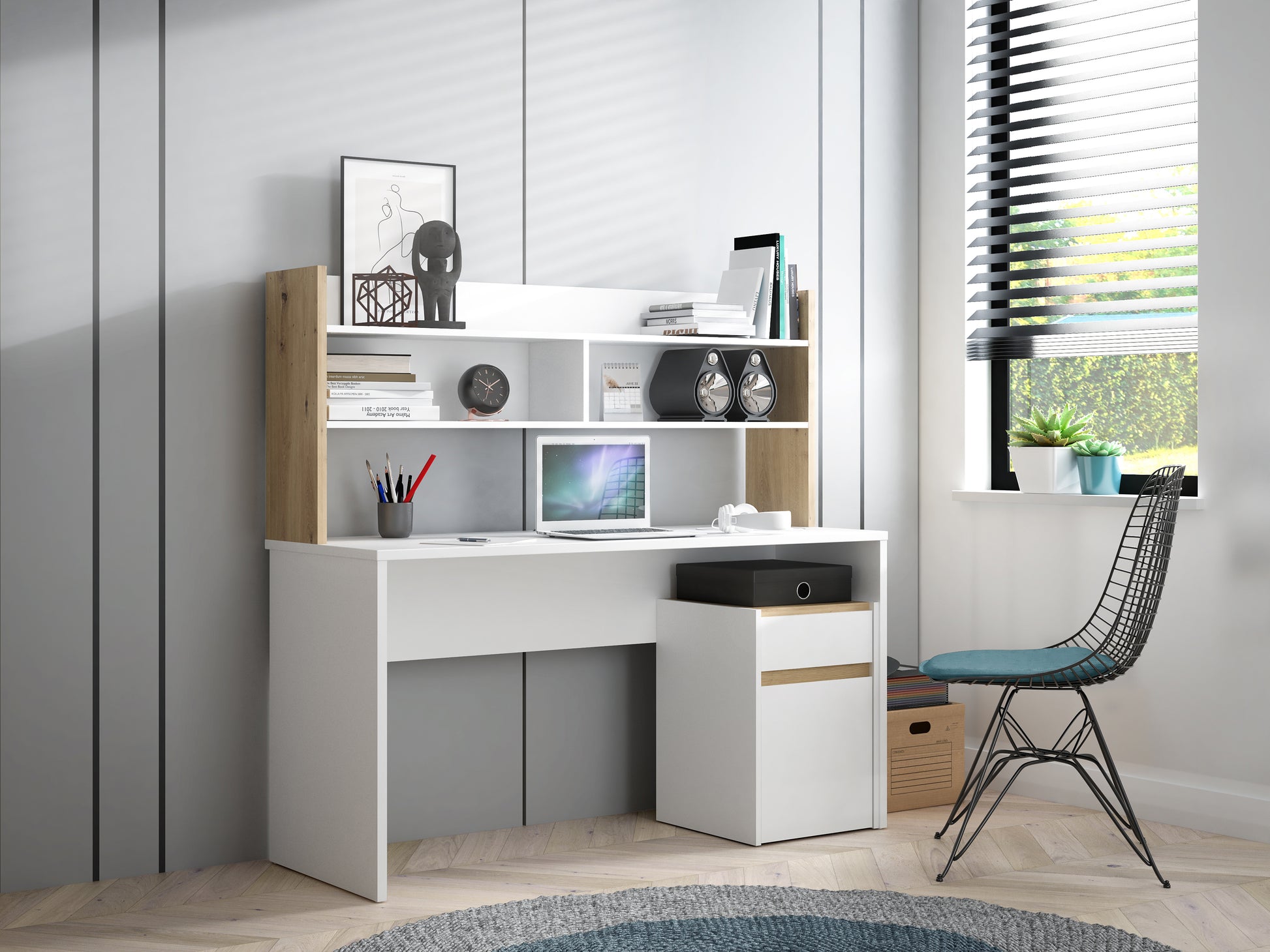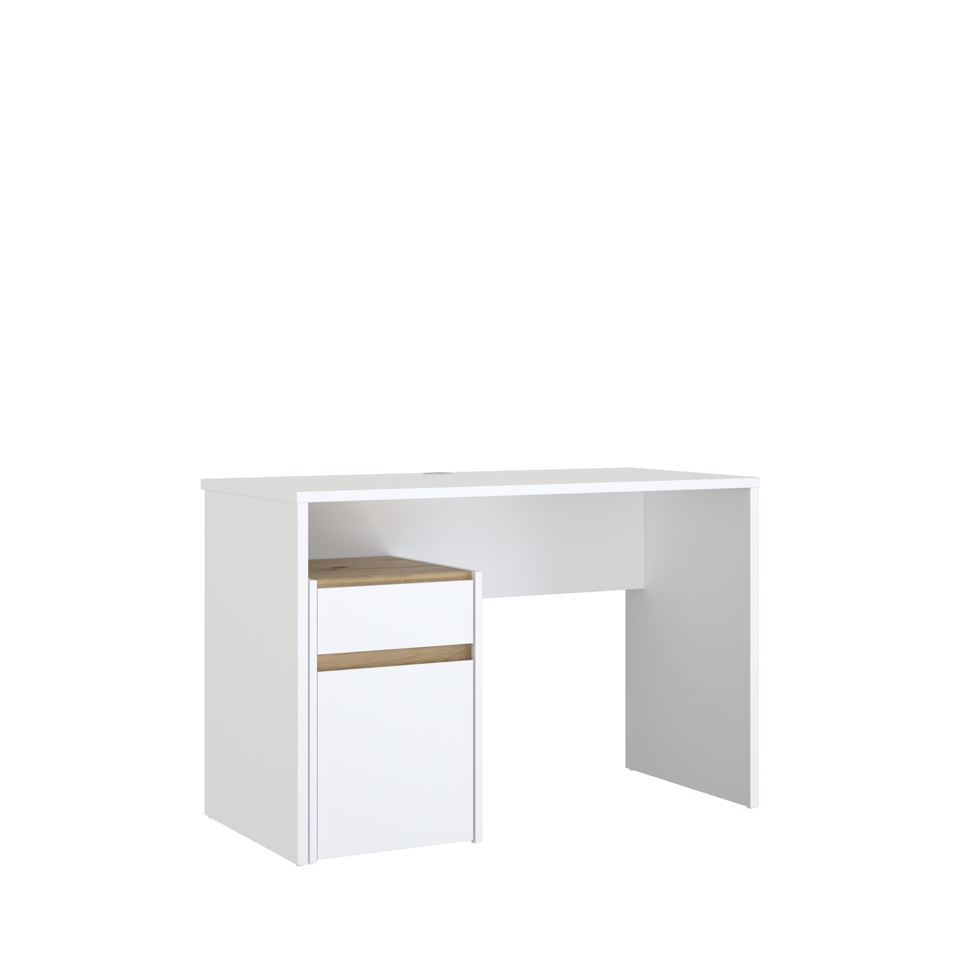 Aprašymas: Šia rašomasis stalas, pagaminta iš aukštos kokybės medžiagų, papildys jūsų interjerą savo moderniu dizainu. Jos išmatavimai yra 110 cm ilgio, 72.7 cm aukščio ir 52.7 cm pločio. Darbo stalas pritaikytas kompiuteriui, bei turi stalčių ir uždaras lentynas. Stalčius su lentynomis, gali būti montuojamas iš abiejų pusių. Galima papildomai užsakyti, stalui pritaikytas lentynas 45Eur.