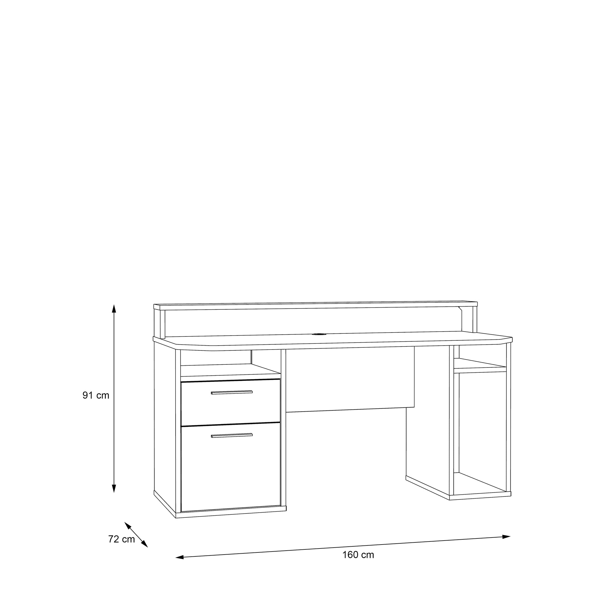 Aprašymas: Šis rašomasis stalas, pagaminta iš aukštos kokybės medžiagų, praturtins jūsų interjerą savo moderniu dizainu. Rašomasis stalas pritaikytas naudotis stacionariu kompiuteriu. Jo išmatavimai yra 160 cm ilgio, 91.1 cm aukščio ir 72 cm pločio.