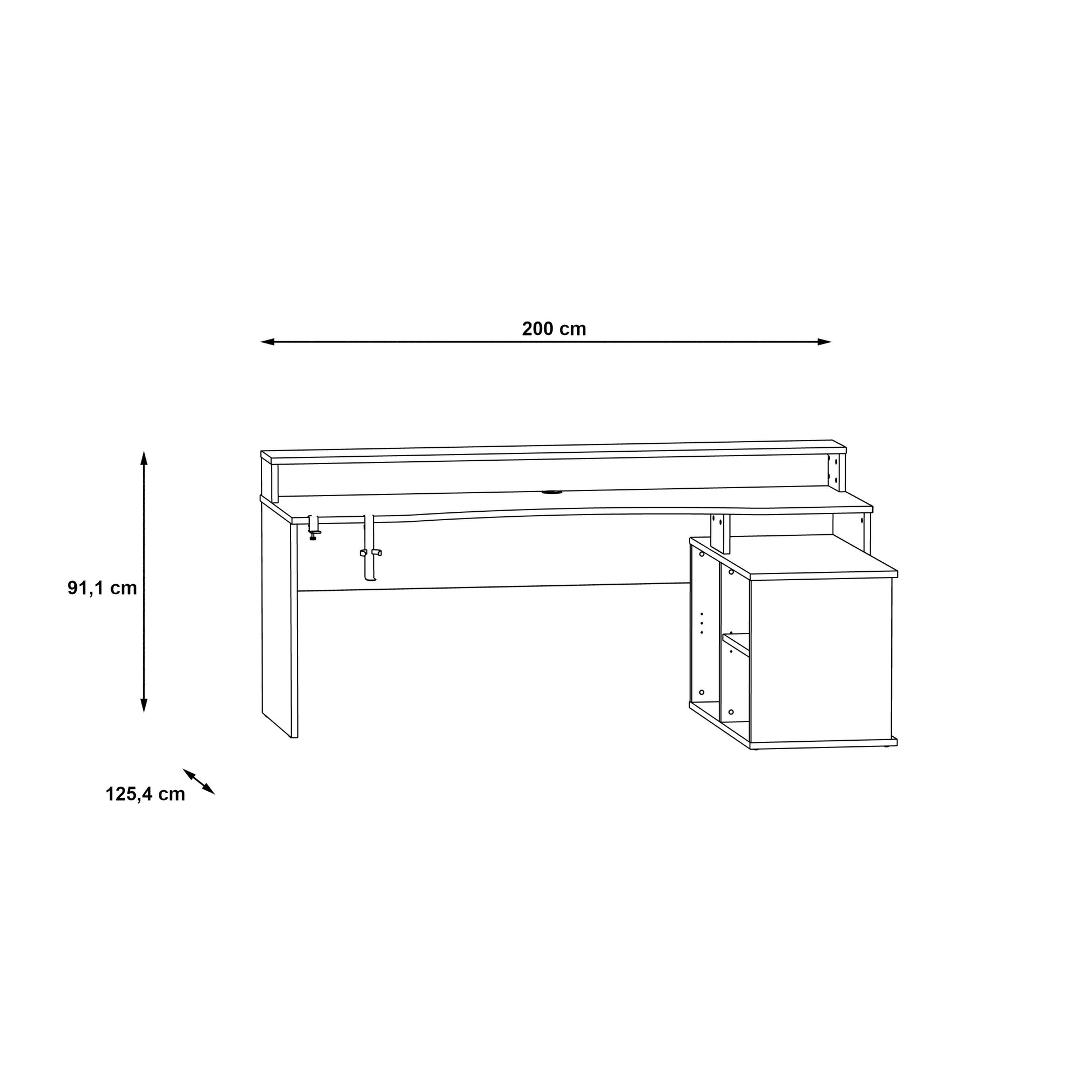 Aprašymas: Šis rašomasis stalas, pagaminta iš aukštos kokybės medžiagų, praturtins jūsų interjerą savo moderniu dizainu. Rašomasis stalas pritaikytas naudotis stacionariu kompiuteriu. Jo išmatavimai yra 200 cm ilgio, 91.1 cm aukščio ir 125.4cm pločio.