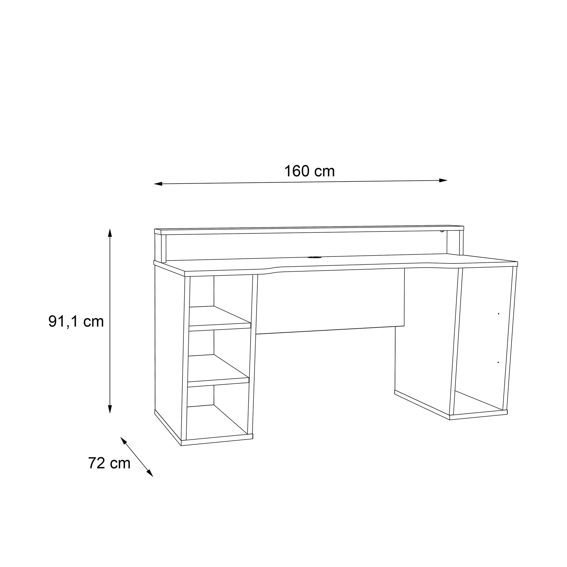 Aprašymas: Šis rašomasis stalas, pagaminta iš aukštos kokybės medžiagų, praturtins jūsų interjerą savo moderniu dizainu. Rašomasis stalas pritaikytas naudotis stacionariu kompiuteriu. Jo išmatavimai yra 160 cm ilgio, 91.1 cm aukščio ir 72 cm pločio.