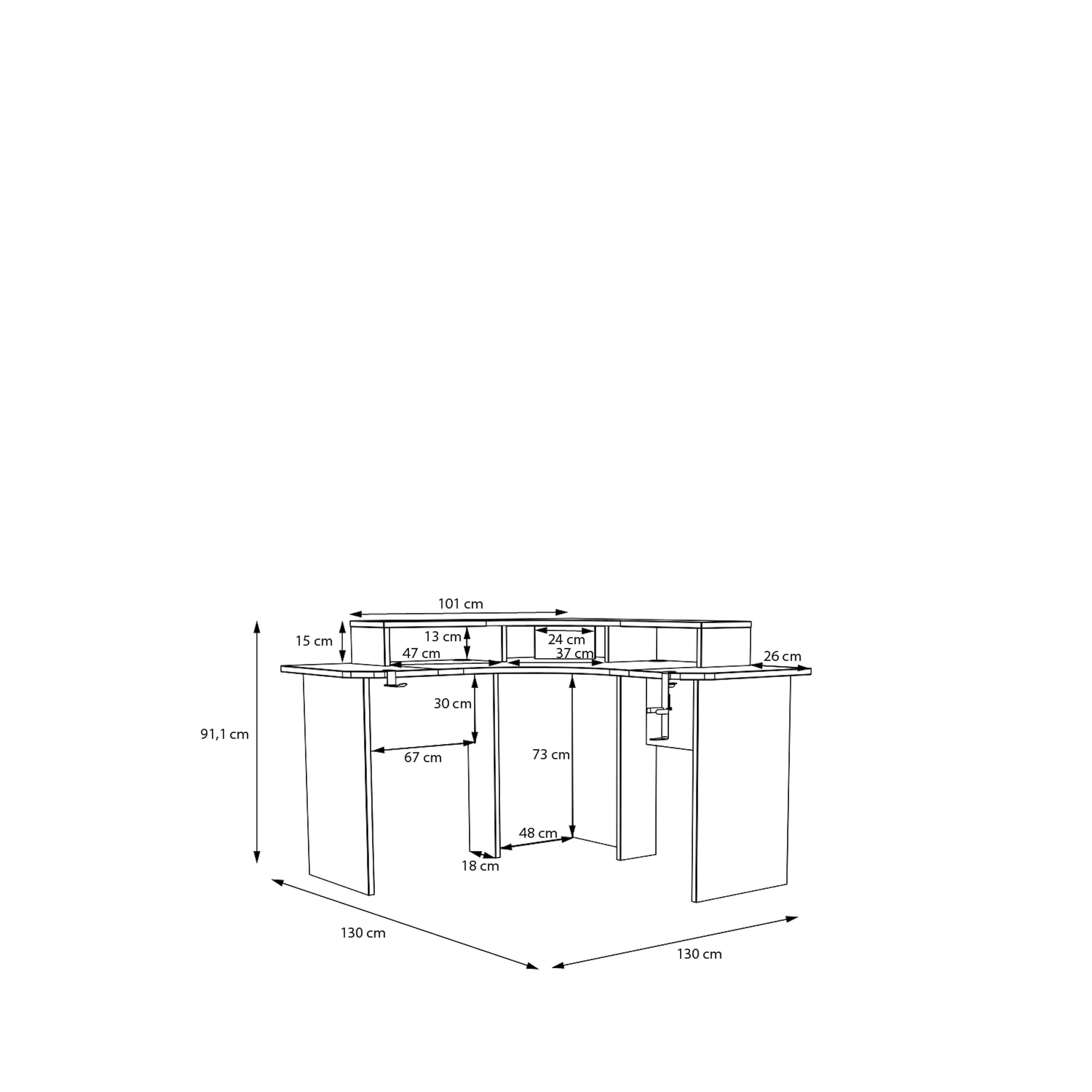 Aprašymas: Šis rašomasis stalas, pagaminta iš aukštos kokybės medžiagų, praturtins jūsų interjerą savo moderniu dizainu. Rašomasis stalas pritaikytas naudotis stacionariu kompiuteriu. Jo išmatavimai yra 130 cm ilgio, 91.1 cm aukščio ir 130 cm pločio.