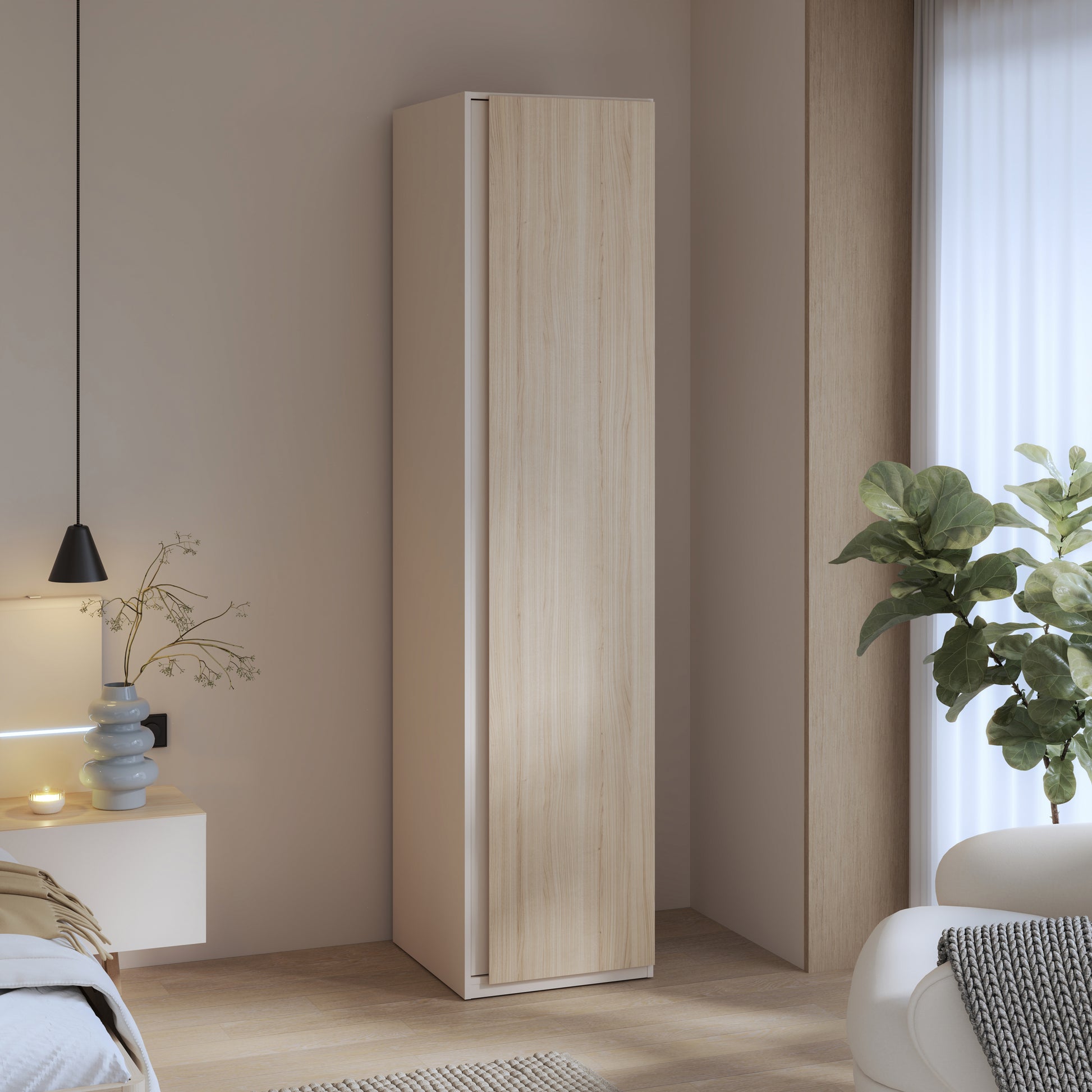 Aprašymas: Kompaktiška ir funkcionali Panoptik spinta – puikus pasirinkimas tvarkos mėgėjams. Vienų durų spinta su lentynomis – viskas, ko reikia tvarkingam rūbų laikymui. Spinta išsiskiria subtiliu ąžuolo ir smėlio spalvų paviršiumi.