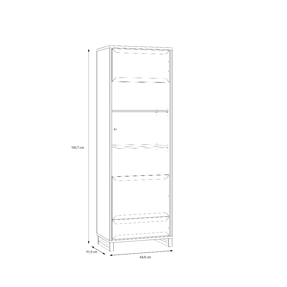 Aprašymas: Ši vitrina, pagaminta iš aukštos kokybės medžiagų, praturtins jūsų interjerą savo jaukiu ir moderniu dizainu. Jos išmatavimai yra 64.8 cm ilgio, 195.7 cm aukščio ir 41.9 cm pločio. Elegantiškoje vitrinoje galėsite eksponuoti norimus daiktus.
